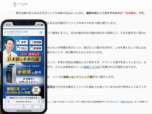 薄毛というのは、その方の人生を大きく左右するほどの悩みであり、『クリニック選び』はとても重要な選択です。