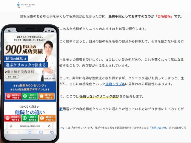 秋葉原周辺の自毛植毛クリニック情報を以下にまとめました。