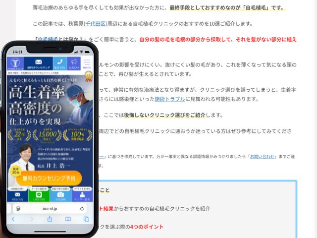 これから東京メトロ秋葉原駅周辺でどの自毛植毛クリニックに通おうか迷っている方はぜひ参考にしてみてくださね。