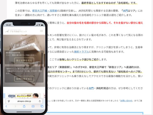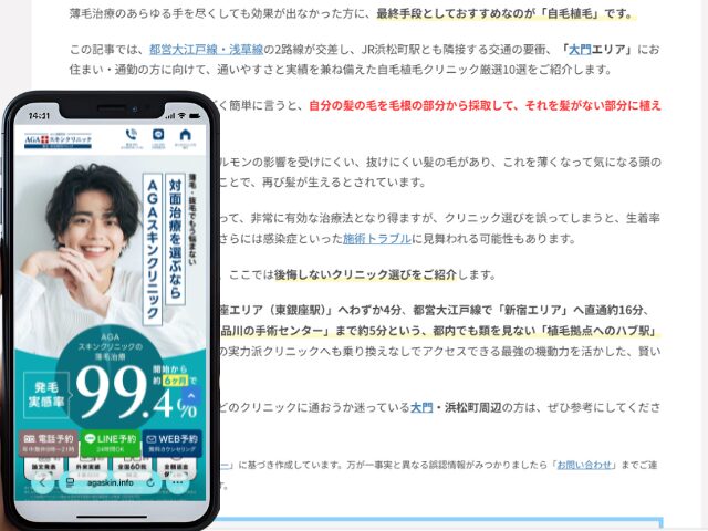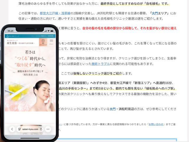 大門周辺の自毛植毛クリニック情報を以下にまとめました。