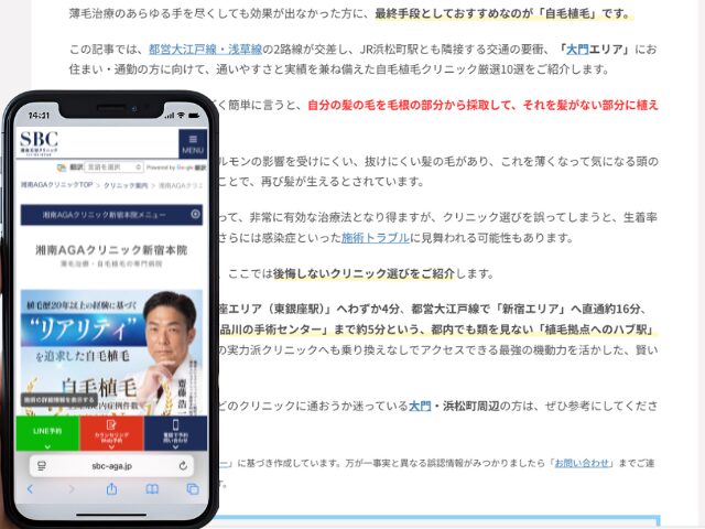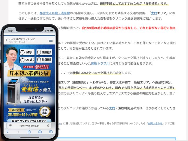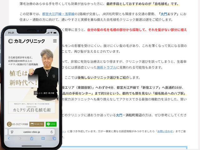 この記事では、都営大江戸線・浅草線の2路線が交差し、JR浜松町駅とも隣接する交通の要衝、「大門エリア」にお住まい・通勤の方に向けて、通いやすさと実績を兼ね備えた自毛植毛クリニック厳選10選をご紹介します。