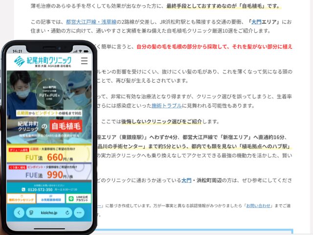 【比較表】大門にある自毛植毛クリニックおすすめ10選!