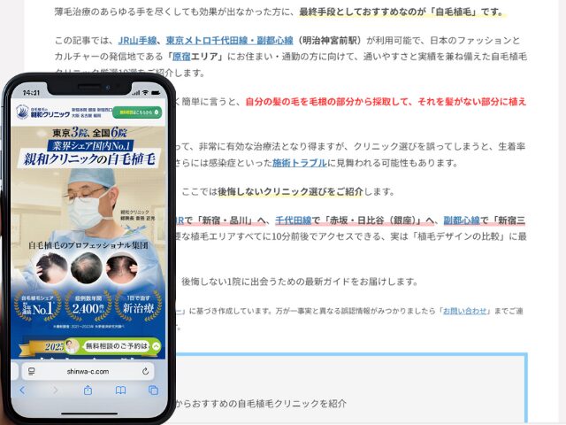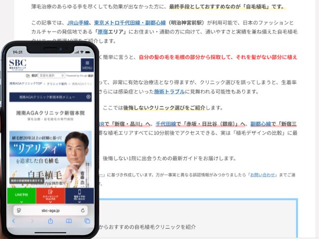 原宿周辺の自毛植毛クリニック情報を以下にまとめました。
