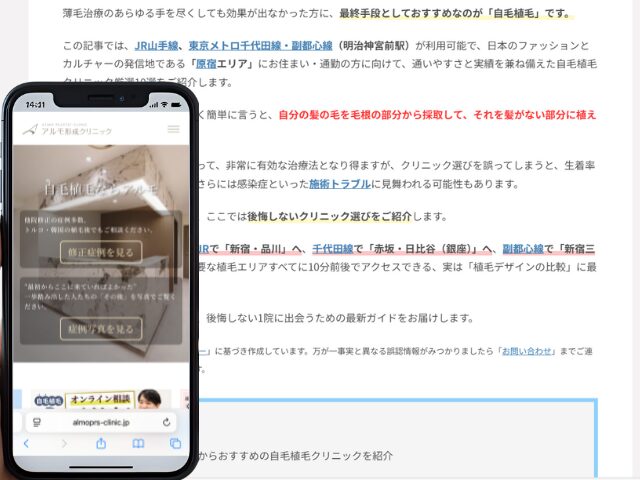 この記事では、JR山手線、東京メトロ千代田線・副都心線(明治神宮前駅)が利用可能で、日本のファッションとカルチャーの発信地である「原宿エリア」にお住まい・通勤の方に向けて、通いやすさと実績を兼ね備えた自毛植毛クリニック厳選10選をご紹介します。