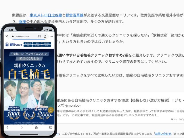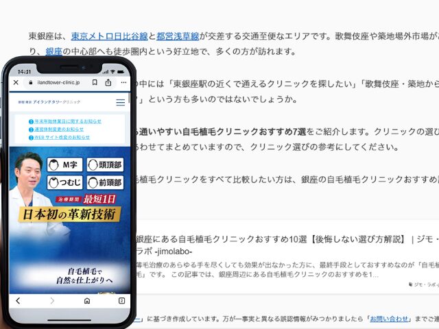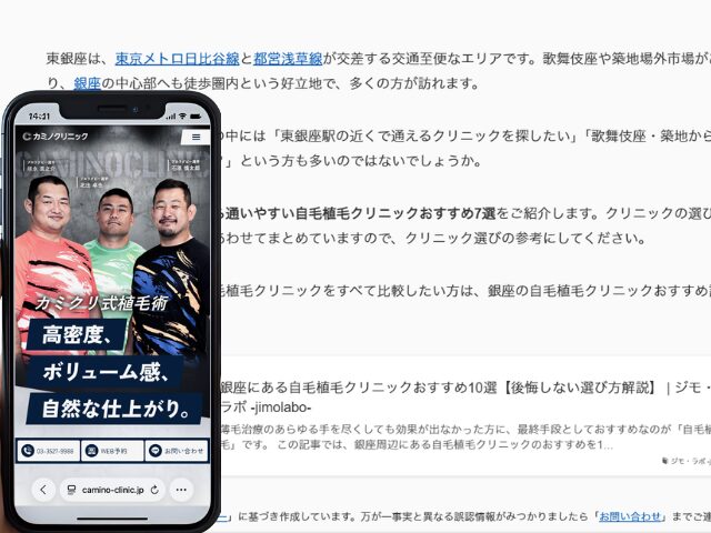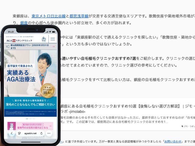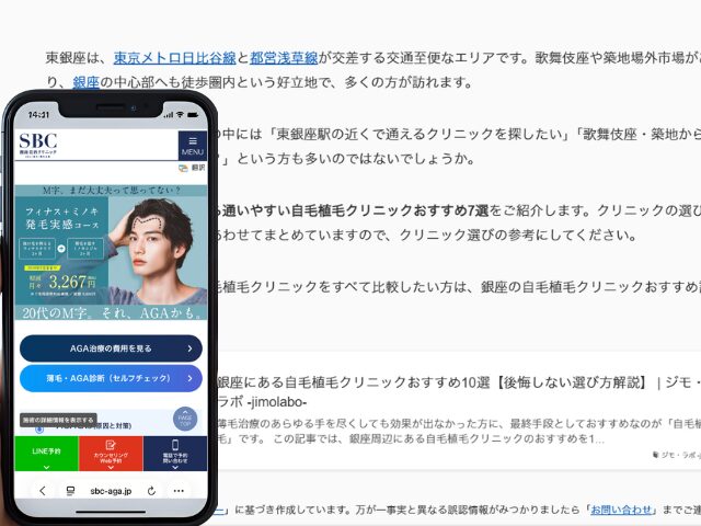 なお、銀座エリア全体の自毛植毛クリニックをすべて比較したい方は、銀座の自毛植毛クリニックおすすめ記事もあわせてご覧ください。
