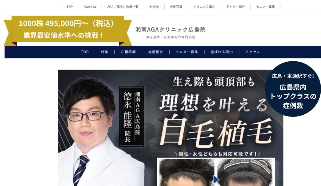 【湘南AGAクリニック 広島院】広島最安水準!1000株49.5万円〜