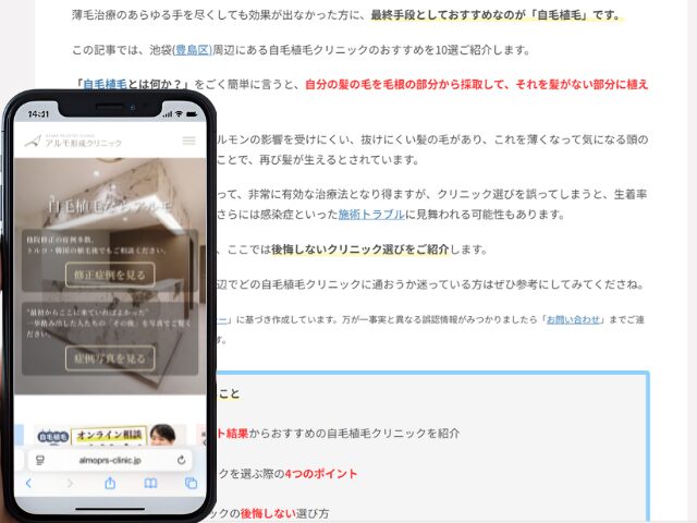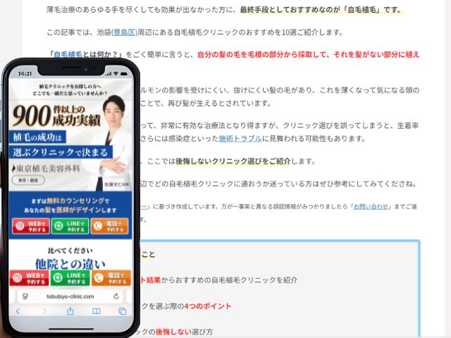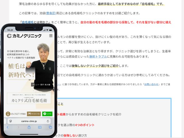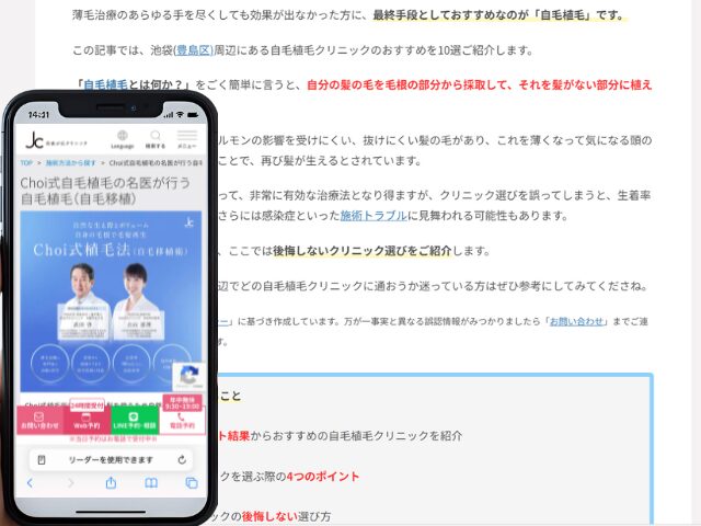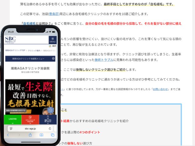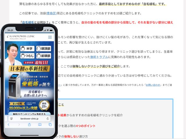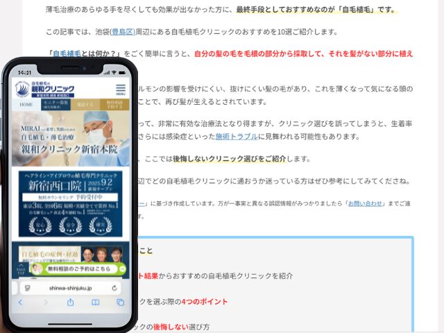 池袋周辺の自毛植毛クリニック情報を以下にまとめました。
