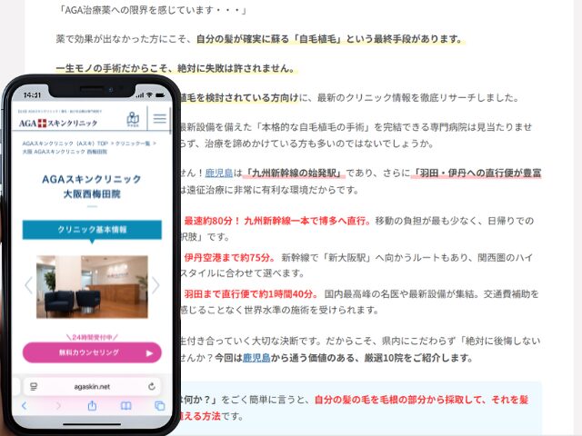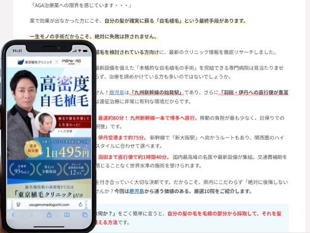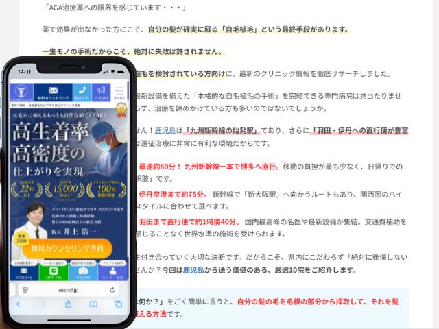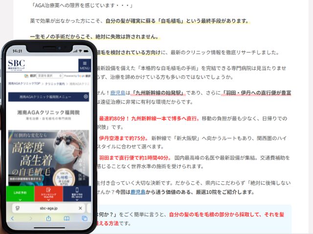 今回は、鹿児島エリアで自毛植毛を検討されている方向けに、最新のクリニック情報を徹底リサーチしました。