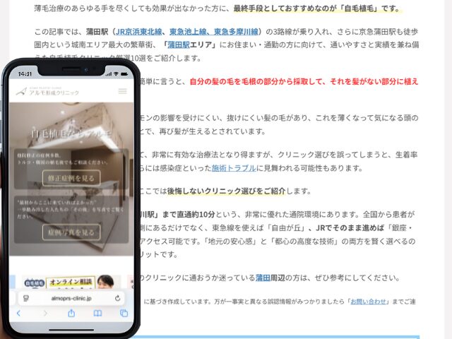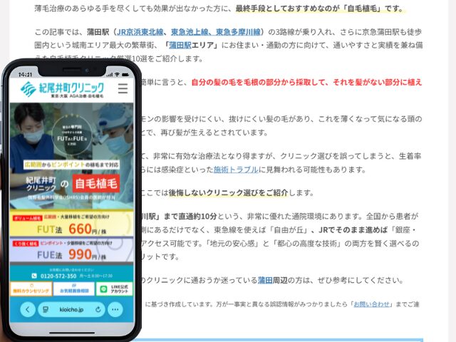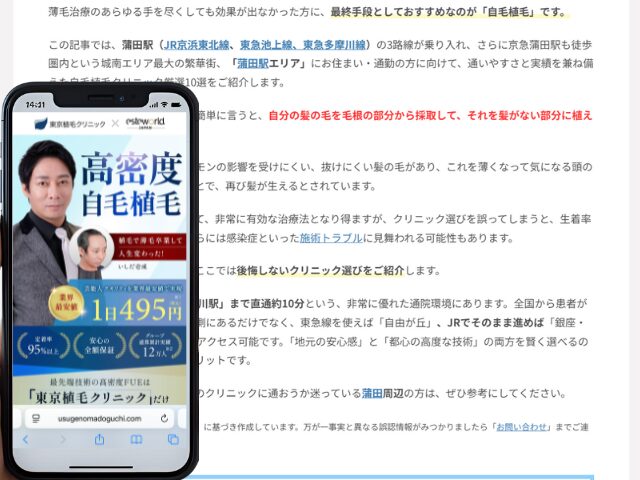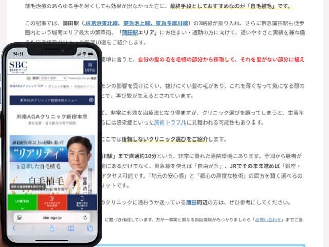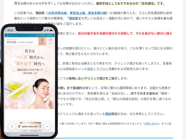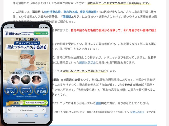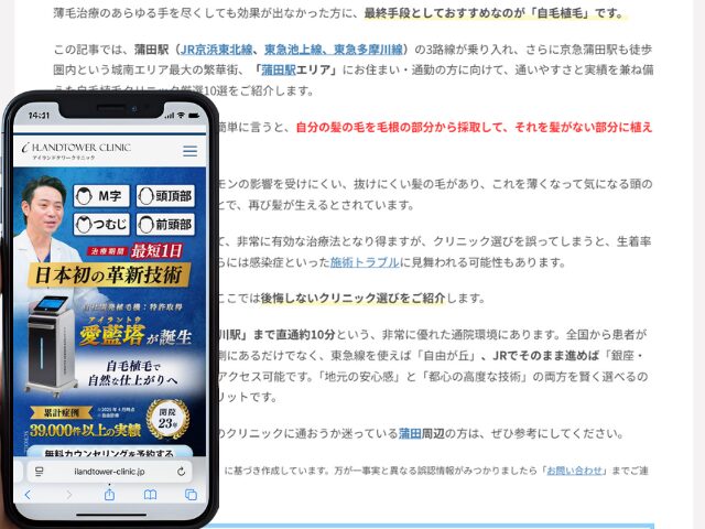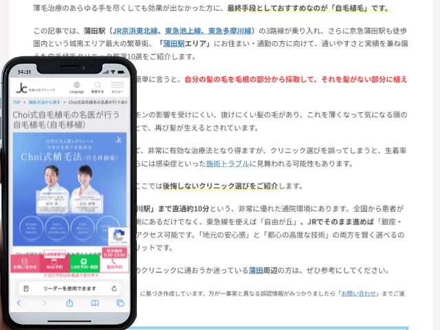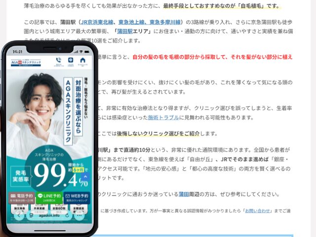 蒲田周辺の自毛植毛クリニック情報を以下にまとめました。