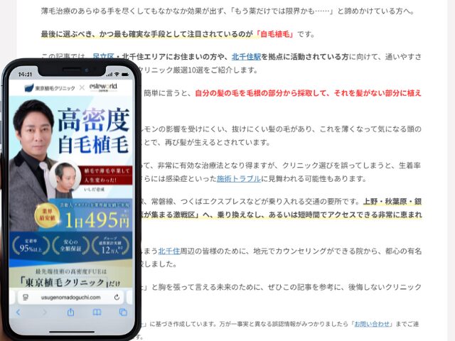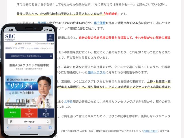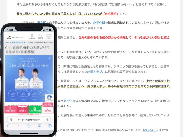 この記事では、足立区・北千住エリアにお住まいの方や、北千住駅を拠点に活動されている方に向けて、通いやすさと実績を兼ね備えた自毛植毛クリニック厳選10選をご紹介します。