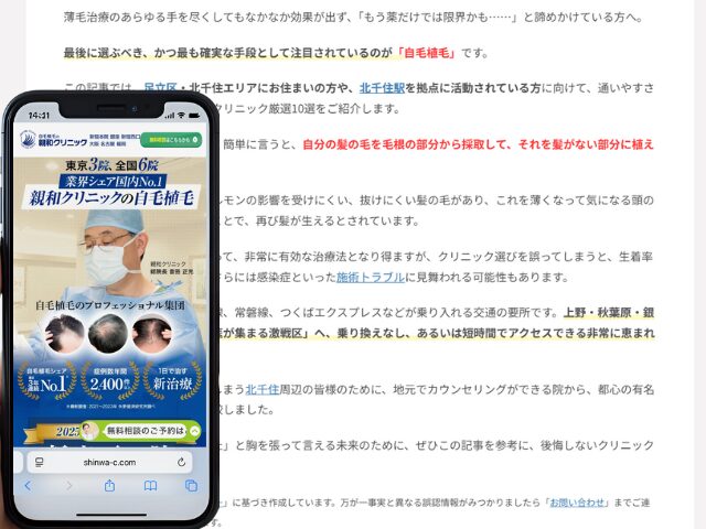 北千住周辺の自毛植毛クリニック情報を以下にまとめました。