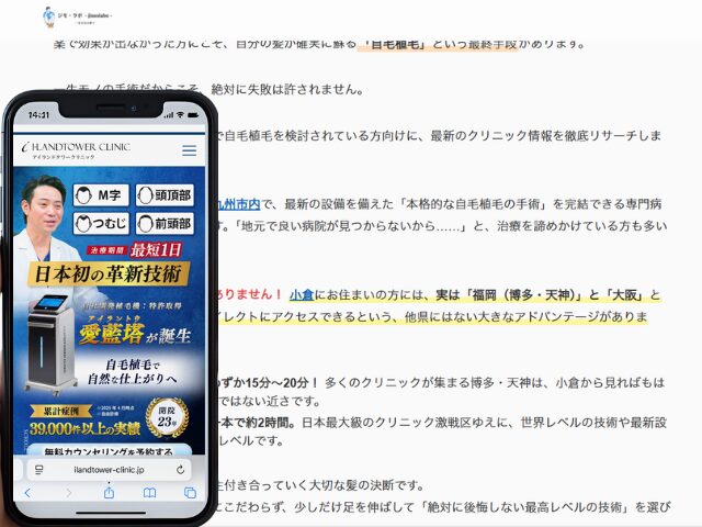 今回は、小倉(福岡)エリアで自毛植毛を検討されている方向けに、最新のクリニック情報を徹底リサーチしました。