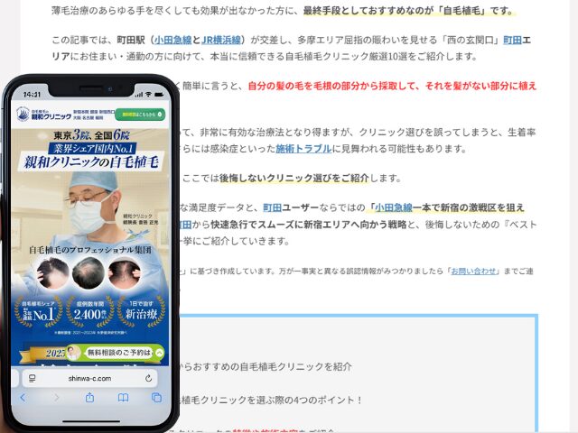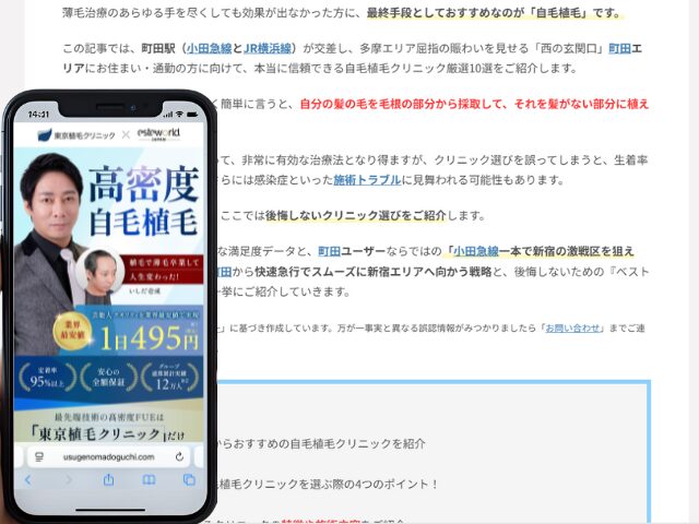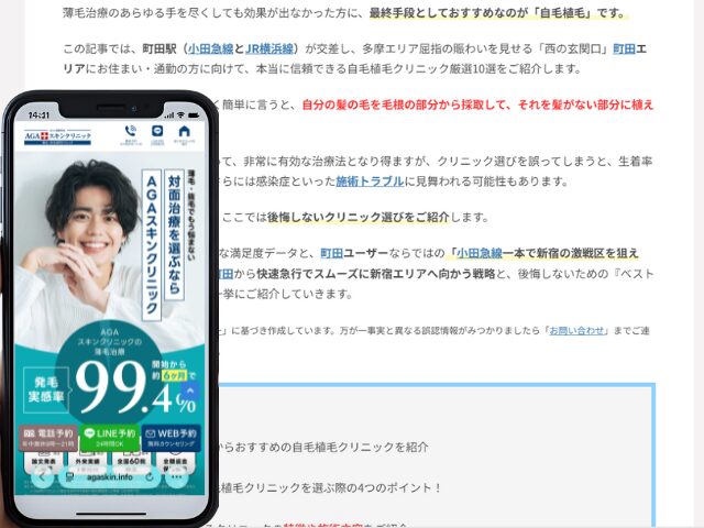 町田周辺の自毛植毛クリニック情報を以下にまとめました。