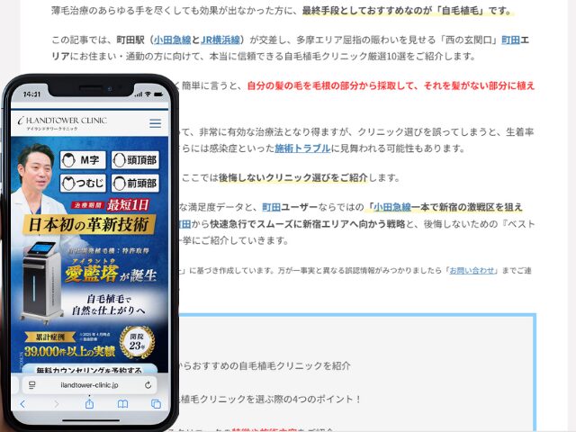 この記事では、町田駅(小田急線とJR横浜線)が交差し、多摩エリア屈指の賑わいを見せる「西の玄関口」町田エリアにお住まい・通勤の方に向けて、本当に信頼できる自毛植毛クリニック厳選10選をご紹介します。
