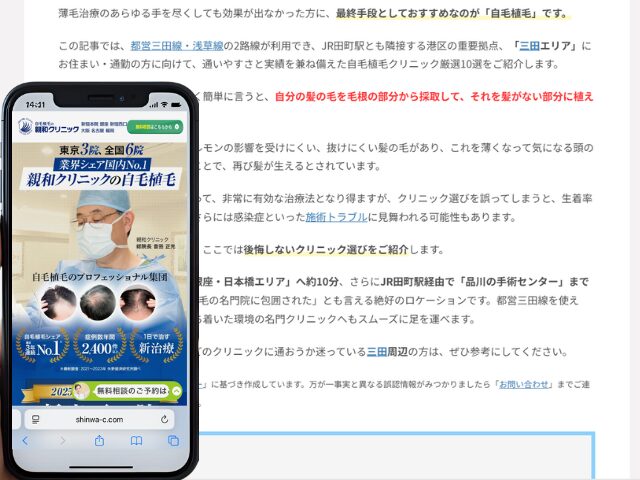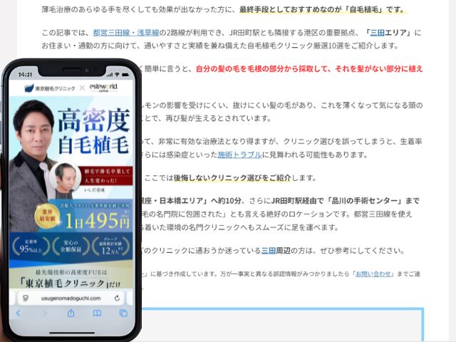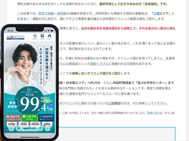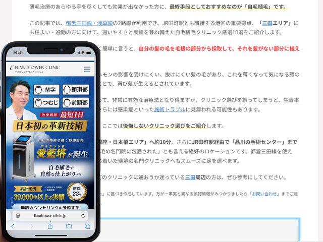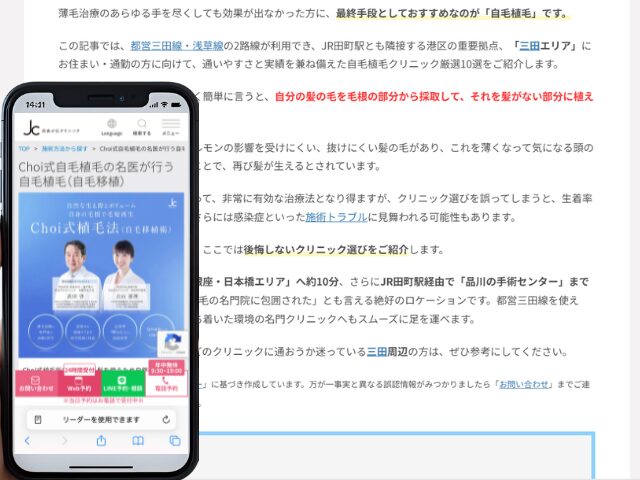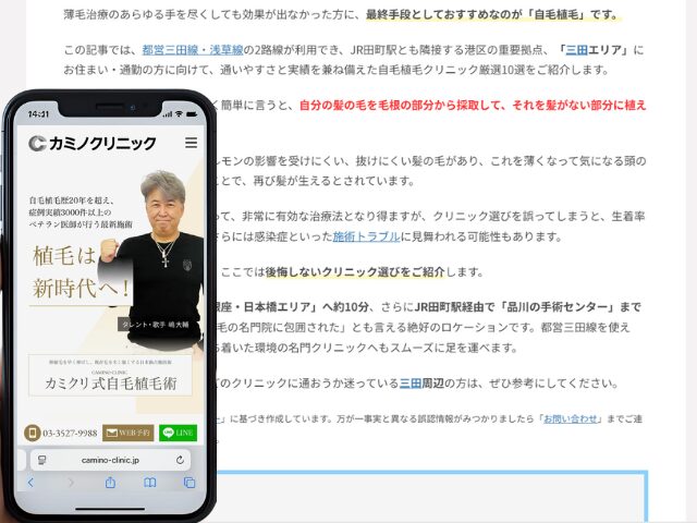 この記事では、都営三田線・浅草線の2路線が利用でき、JR田町駅とも隣接する港区の重要拠点、「三田エリア」にお住まい・通勤の方に向けて、通いやすさと実績を兼ね備えた自毛植毛クリニック厳選10選をご紹介します。