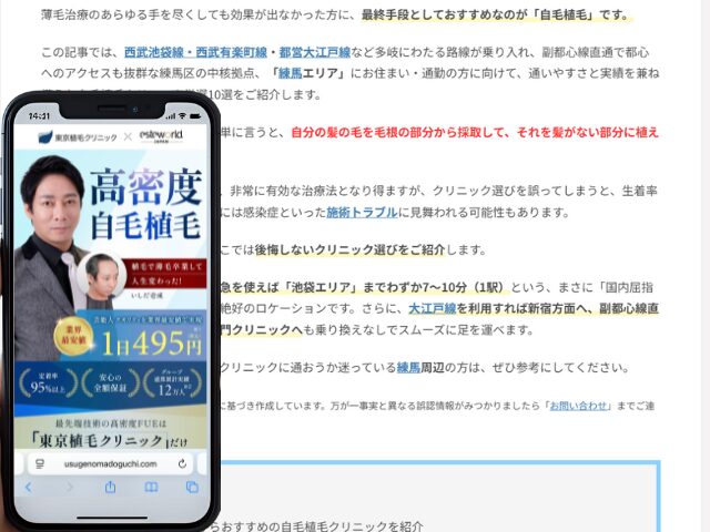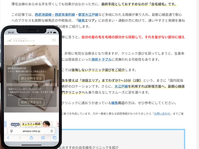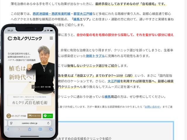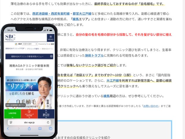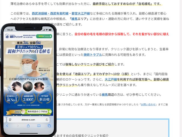 練馬周辺の自毛植毛クリニック情報を以下にまとめました。
