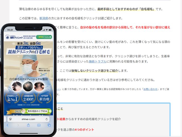 この記事では、新潟県の方におすすめの自毛植毛クリニック10選ご紹介します。