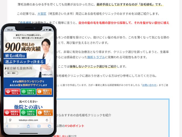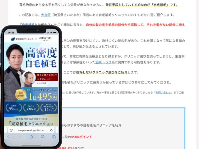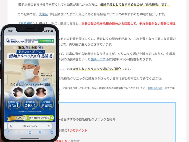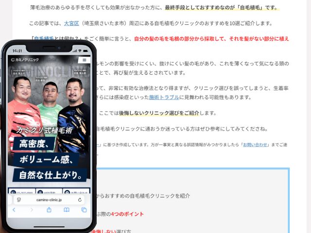 【比較表】埼玉(大宮)にある自毛植毛クリニックおすすめ10選!