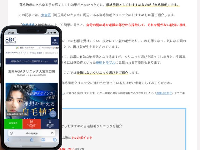 これからJR大宮駅周辺でどの自毛植毛クリニックに通おうか迷っている方はぜひ参考にしてみてくださね。