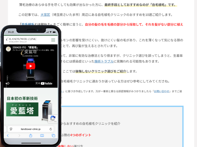 大宮(埼玉)周辺の自毛植毛クリニック情報を以下にまとめました。