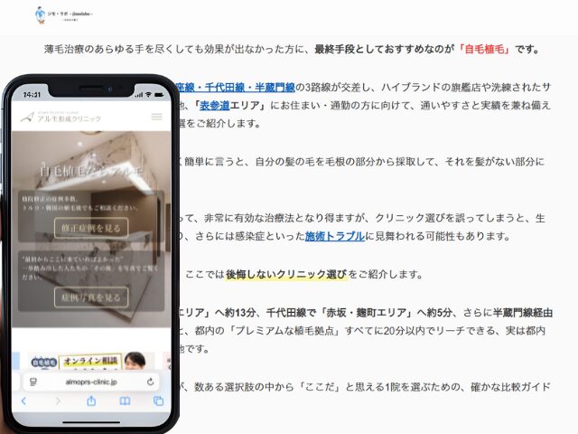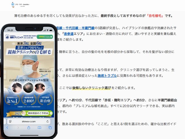 表参道周辺の自毛植毛クリニック情報を以下にまとめました。