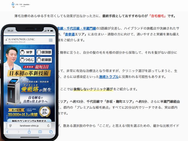 銀座で信頼できる植毛クリニックを探している方には本当におすすめです。