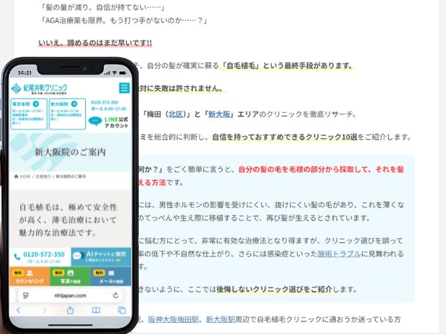 これからJR大阪駅、阪急梅田駅、阪神大阪梅田駅、新大阪駅周辺で自毛植毛クリニックに通おうか迷っている方は、ぜひ参考にしてください。