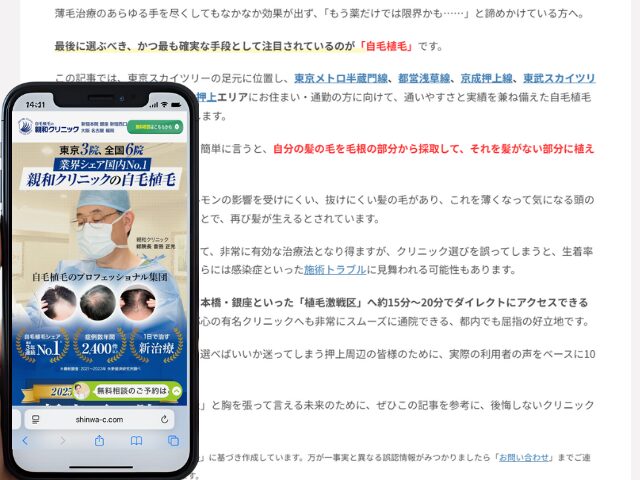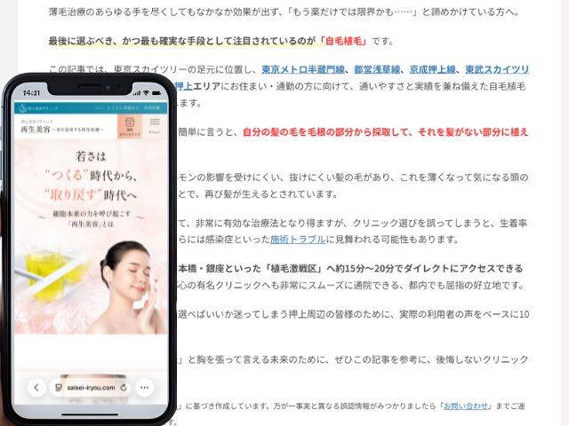 押上周辺の自毛植毛クリニック情報を以下にまとめました。