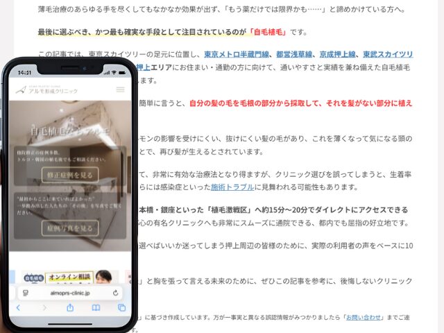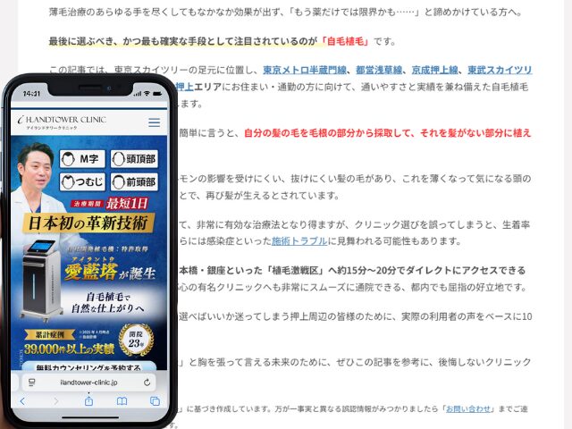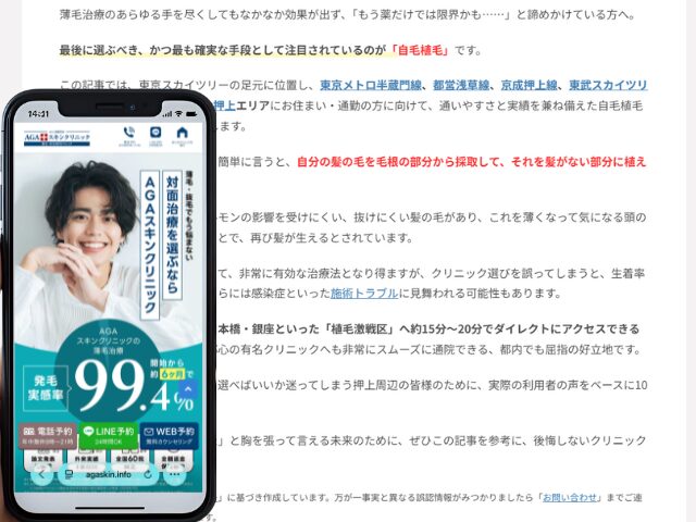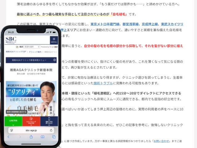 この記事では、東京スカイツリーの足元に位置し、東京メトロ半蔵門線、都営浅草線、京成押上線、東武スカイツリーラインの4路線が利用可能な押上エリアにお住まい・通勤の方に向けて、通いやすさと実績を兼ね備えた自毛植毛クリニック厳選10選をご紹介します。