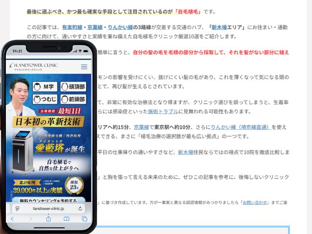 薄毛というのは、その方の人生を大きく左右するほどの悩みであり、『クリニック選び』はとても重要な選択です。