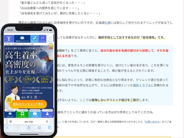 薄毛から解放されるために自毛植毛を受けたいのですが、北海道札幌には安心して任せられるクリニックがあるでしょうか?