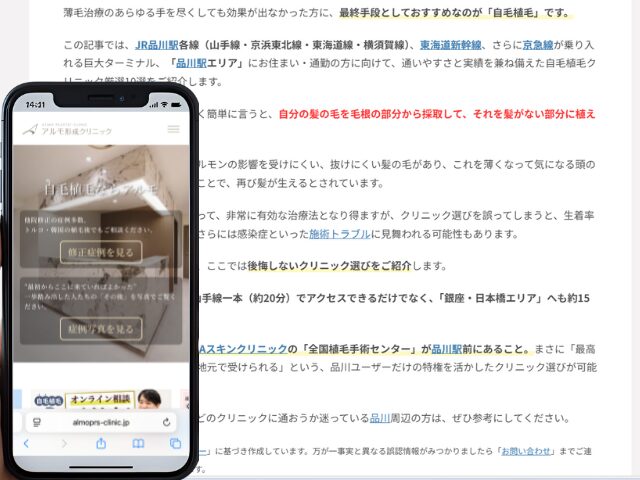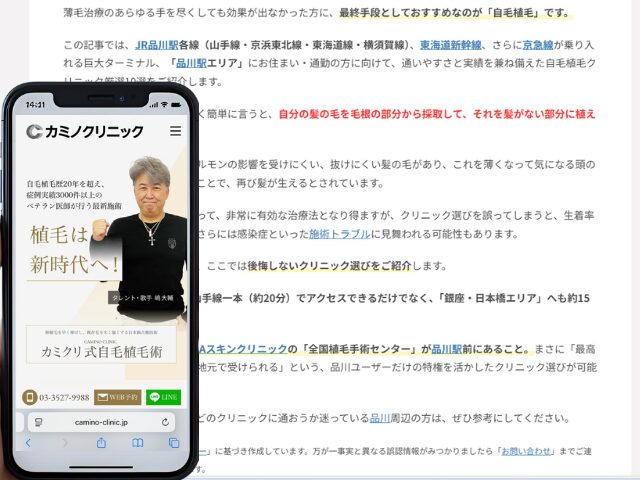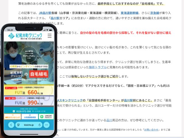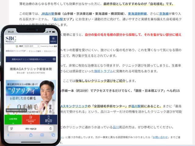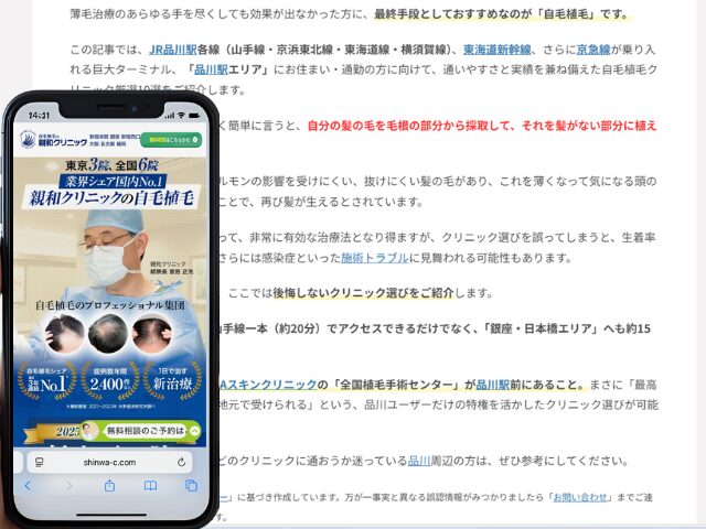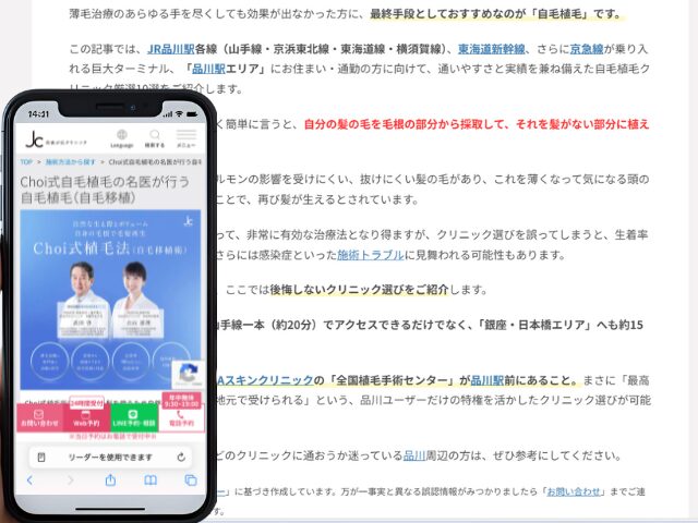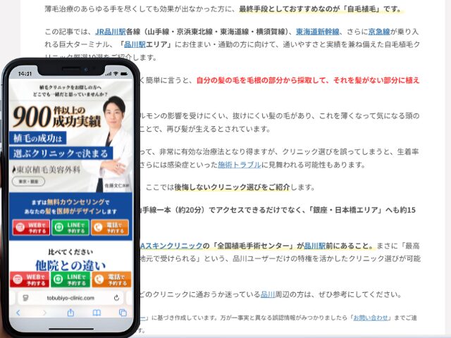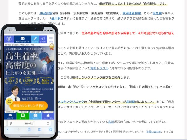 品川周辺の自毛植毛クリニック情報を以下にまとめました。