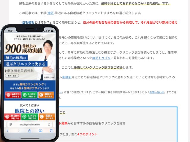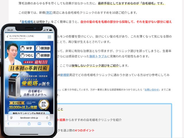 これから東京メトロ新橋駅、JR新橋駅周辺でどの自毛植毛クリニックに通おうか迷っている方はぜひ参考にしてみてくださね。