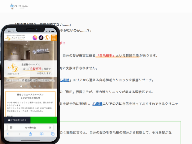 これから御堂筋線心斎橋、長堀鶴見緑地線心斎橋、四つ橋線四ツ橋周辺で自毛植毛クリニックに通おうか迷っている方は、ぜひ参考にしてください。