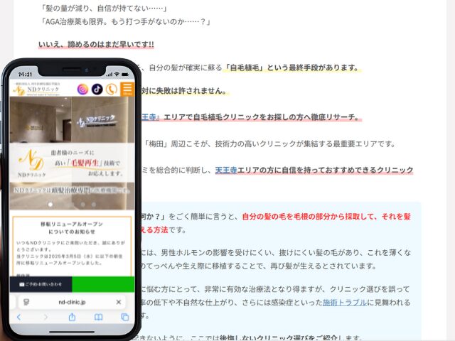 【天王寺】自毛植毛の相談は「地元クリニック」or「オンライン」で完結!