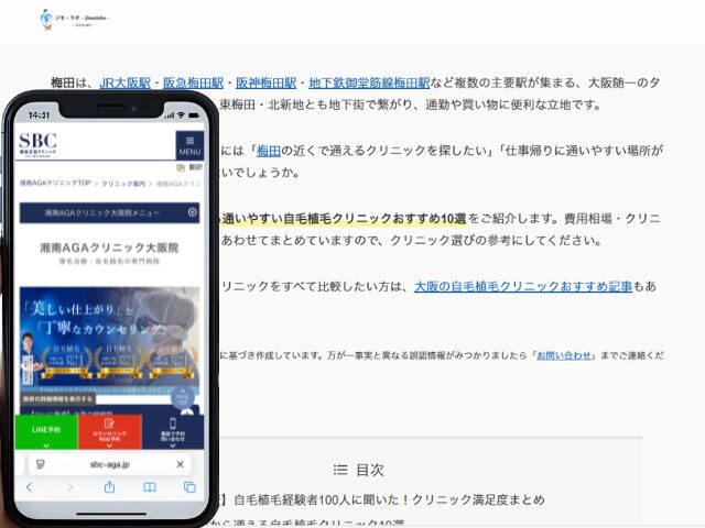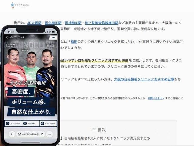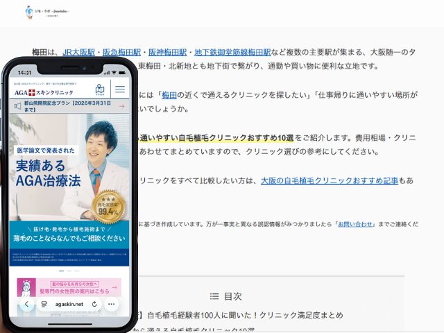 なお、大阪エリアの自毛植毛クリニックをすべて比較したい方は、大阪の自毛植毛クリニックおすすめ記事もあわせてご覧ください。