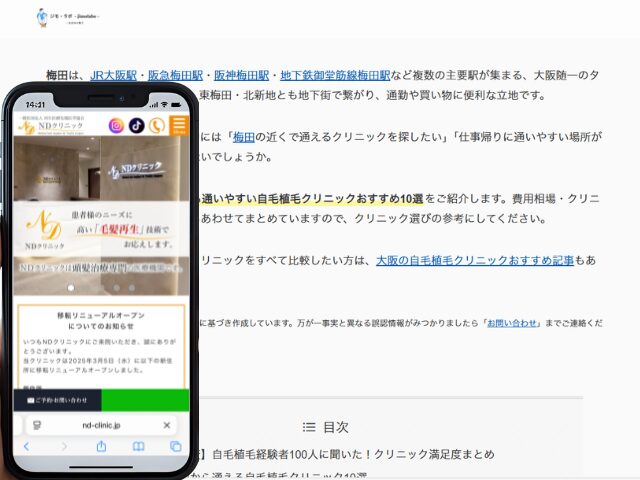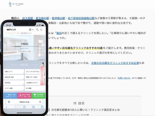 自毛植毛を検討している方の中には「梅田の近くで通えるクリニックを探したい」「仕事帰りに通いやすい場所がいい」という方も多いのではないでしょうか。