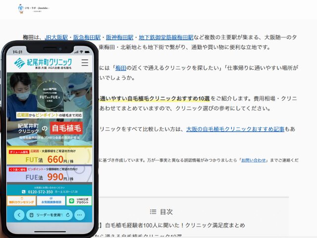 この記事では、梅田エリアから通いやすい自毛植毛クリニックおすすめ10選をご紹介します。費用相場・クリニックの選び方・よくある疑問もあわせてまとめていますので、クリニック選びの参考にしてください。